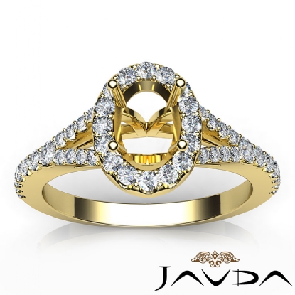 Diamond Engagement 14k Gold Halo Pave Setting Oval Semi Mount Ring (0.5Ct. tw.)