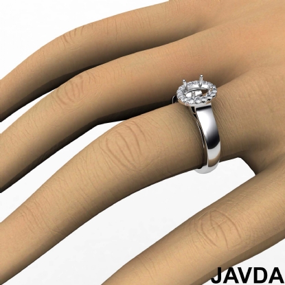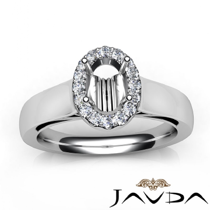 Oval Diamond Engagement Halo Pave Setting Semi Mount Ring Platinum (0.2Ct. tw.)