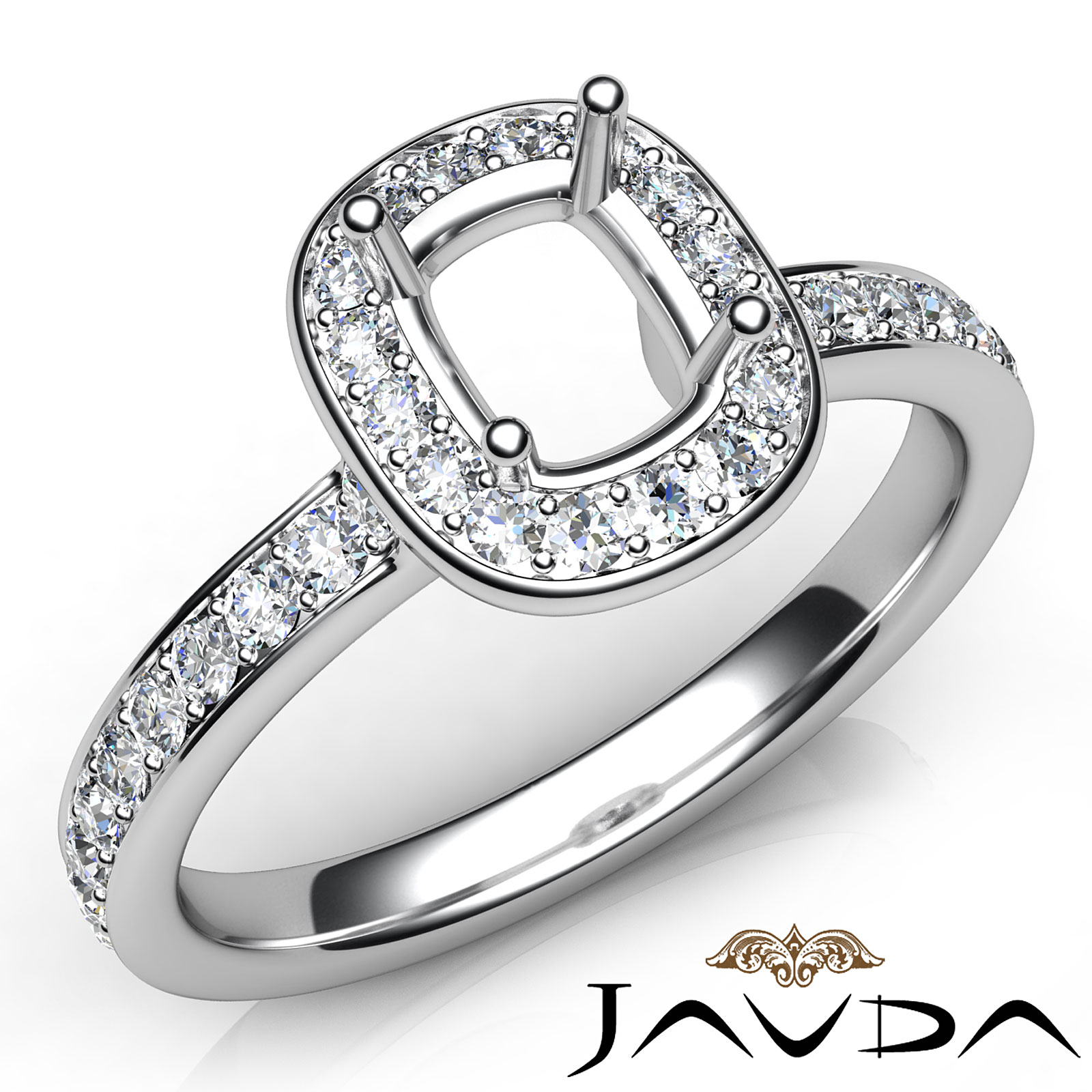 Diamond Engagement Halo Pave Setting Cushion Semi Mount Ring 18k W Gold (0.37Ct. tw.)