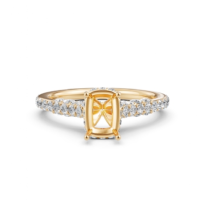 Diamond Engagement Pave Setting 14k Gold Cushion Semi Mount Ring (0.52Ct. tw.)