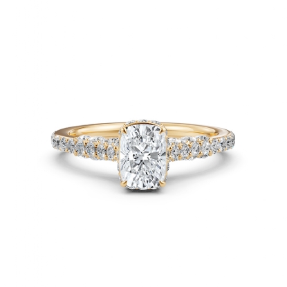 Side 0.52 ctw. Round Diamond Round Diamond Women Engagement & Anniversary Solid Ring made in 14k Gold Yellow. Diamonds are set in Pave Setting for Cushion Cut in a Semi Mount. (0.52Ct. tw.)