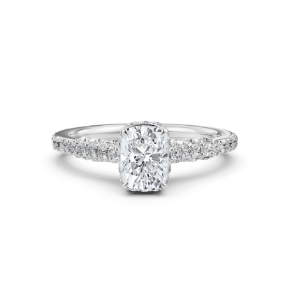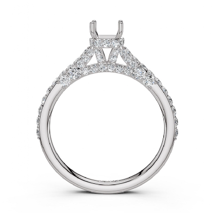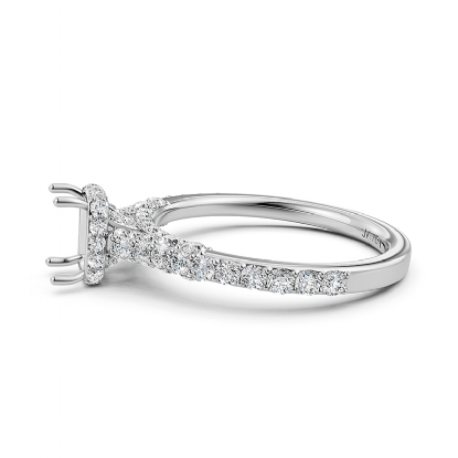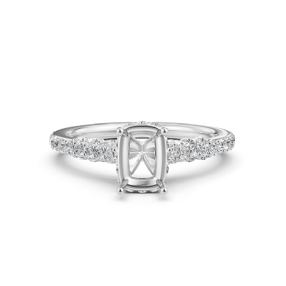 Diamond Engagement Pave Setting Platinum Cushion Semi Mount Ring (0.52Ct. tw.)
