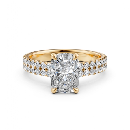 Side 0.30 ctw. Round Diamond Round Diamond Women Engagement & Anniversary Solid Ring made in 14k Gold Yellow. Diamonds are set in U Shape Prong Setting for Cushion Cut in a Semi Mount. (0.3Ct. tw.)