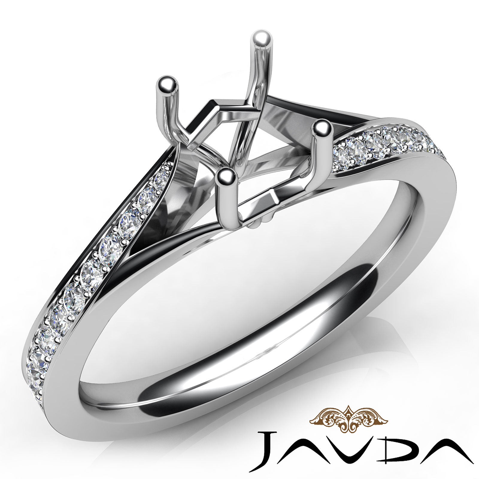 Side 0.35 ctw. Round Diamond Round Diamond Women Engagement & Anniversary Solid Ring made in 18k Gold White. Diamonds are set in Pave Setting for Cushion Cut in a Semi Mount. (0.35Ct. tw.)