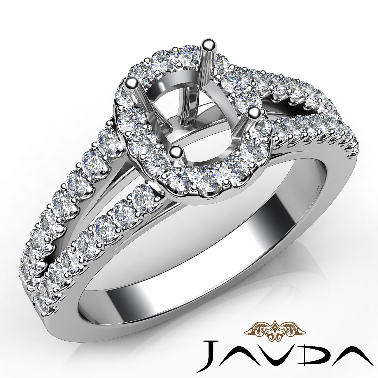 Side 0.75 ctw. Round Diamond Gorgeous Round Diamond Women Engagement & Anniversary Solid Ring made in Platinum 950. Diamonds are set in Halo Prong Set for Cushion Cut in a Semi Mount. (0.75Ct. tw.)