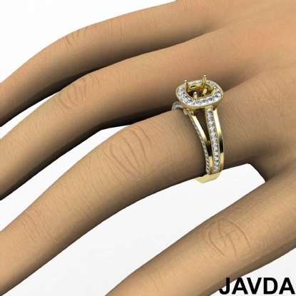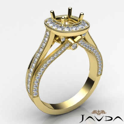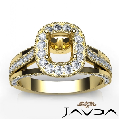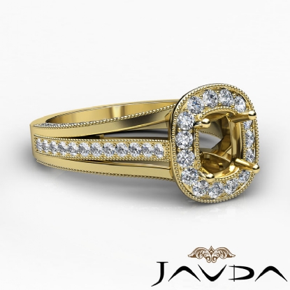 Halo Pave Diamond Engagement Cushion Semi Mount Millgrain Ring 14k Gold (0.9Ct. tw.)