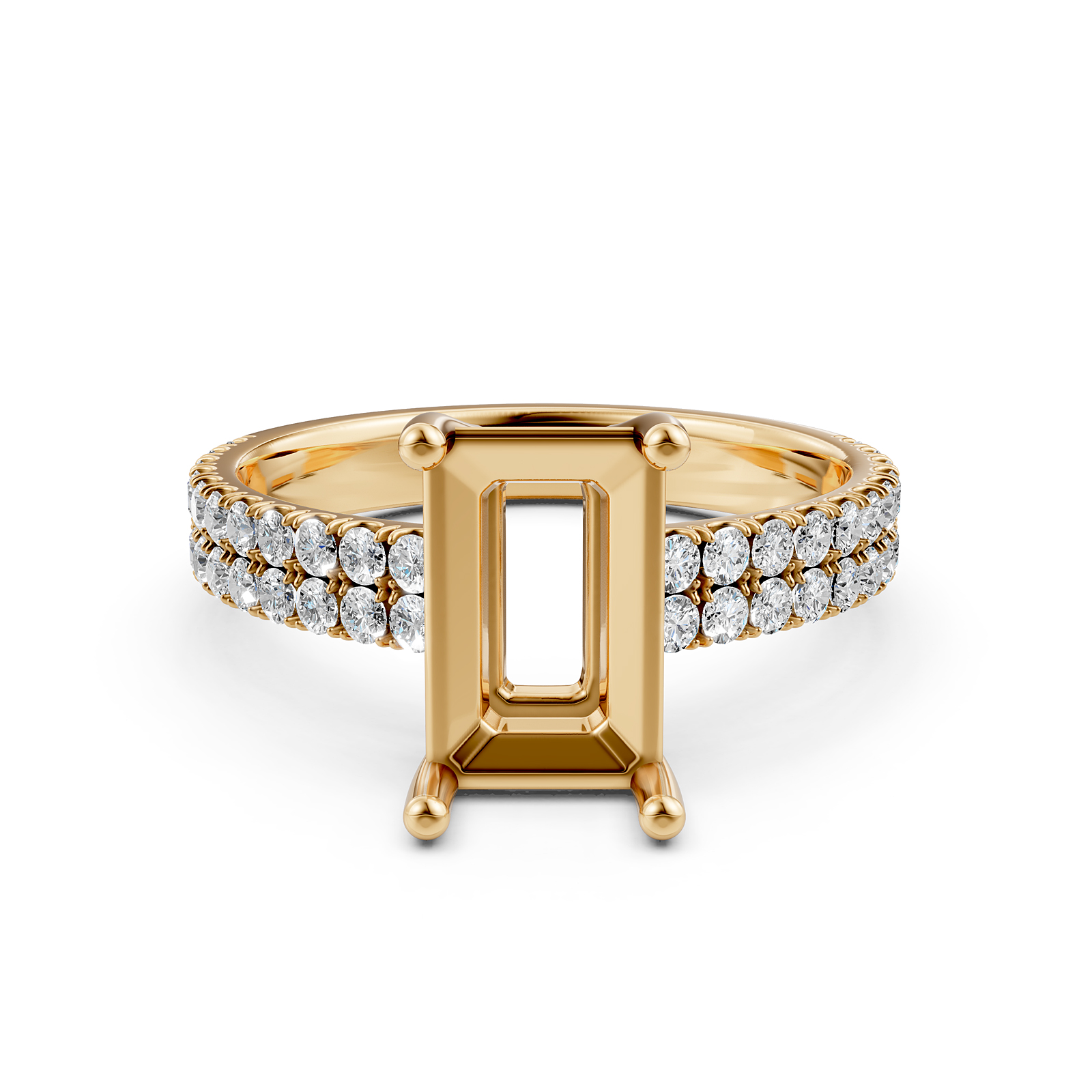 Side 0.50 ctw. Round Diamond Round Diamond Women Engagement & Anniversary Solid Ring made in 18k Gold Yellow. Diamonds are set in U Shape Prong Setting for Emerald Cut in a Semi Mount. (0.5Ct. tw.)