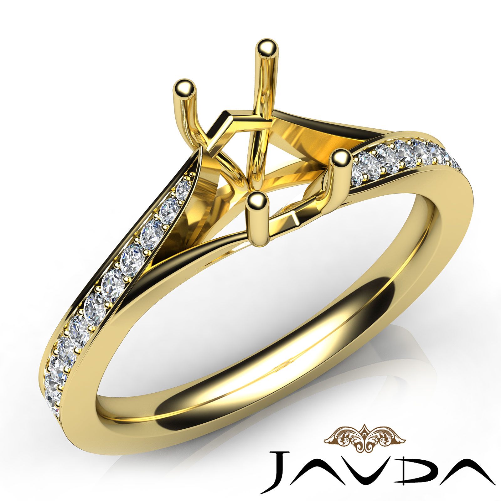 Side 0.35 ctw. Round Diamond Round Diamond Women Engagement & Anniversary Solid Ring made in 18k Gold Yellow. Diamonds are set in Pave Setting for Emerald Cut in a Semi Mount. (0.35Ct. tw.)