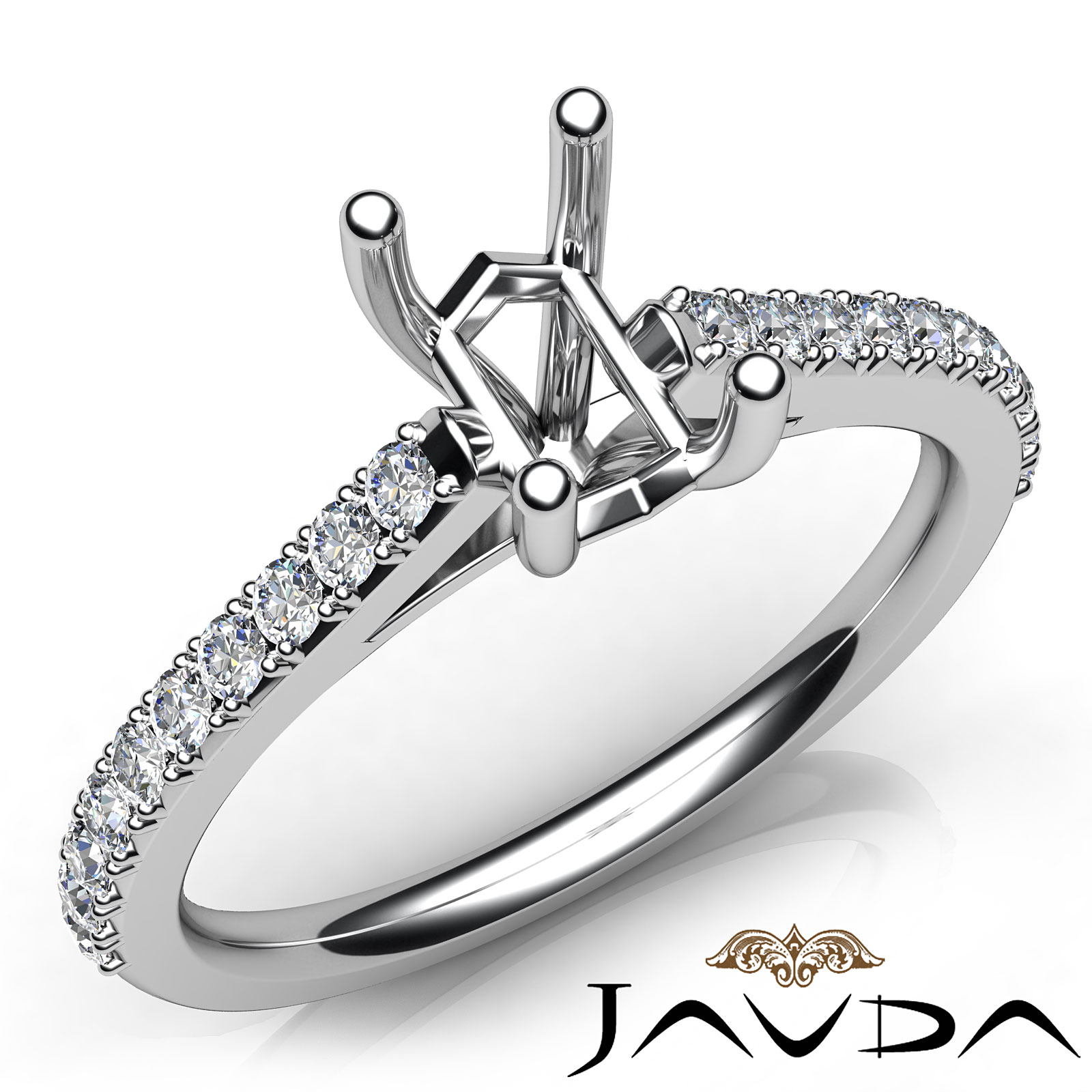 Side 0.30 ctw. Round Diamond Round Diamond Women Engagement & Anniversary Solid Ring made in Platinum 950. Diamonds are set in Double Prong Setting for Emerald Cut in a Semi Mount. (0.3Ct. tw.)