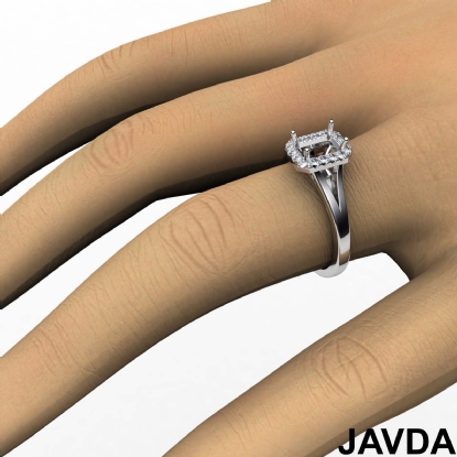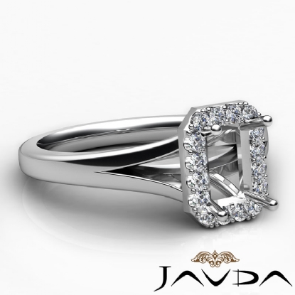 Diamond Engagement Emerald Semi Mount Platinum Halo Pave Setting Ring (0.2Ct. tw.)