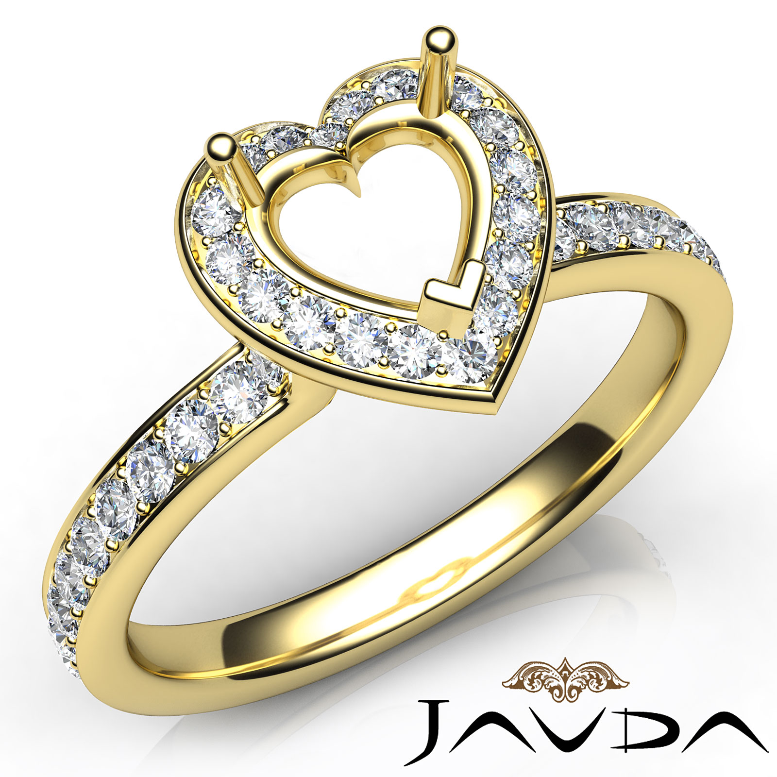 Diamond Engagement Halo Pave Setting Heart Semi Mount Ring 14k Gold (0.45Ct. tw.)