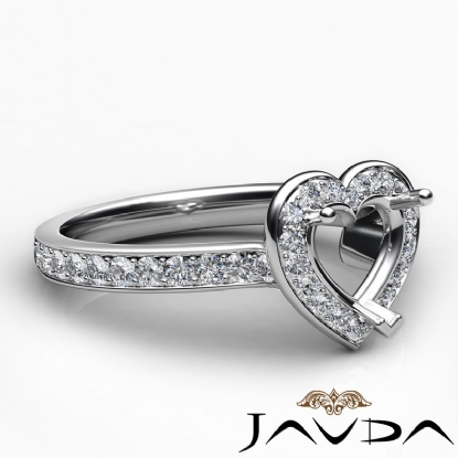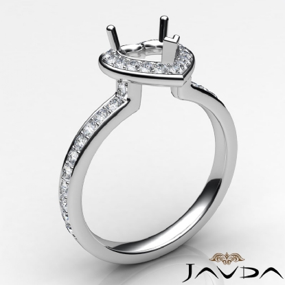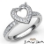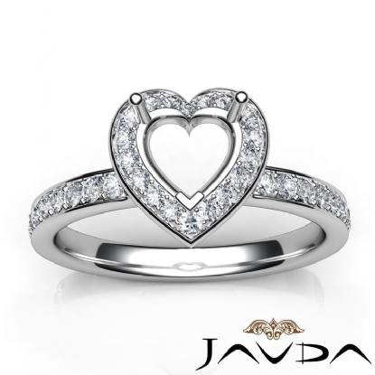 Diamond Engagement Halo Pave Setting Heart Semi Mount Ring 18k W Gold (0.45Ct. tw.)