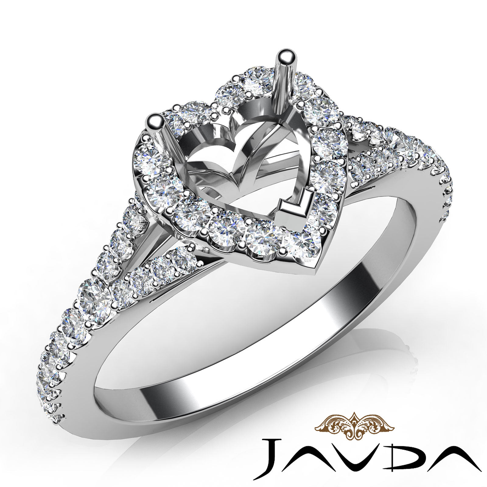 Diamond Engagement Platinum Halo Pave Setting Heart Semi Mount Ring (0.5Ct. tw.)