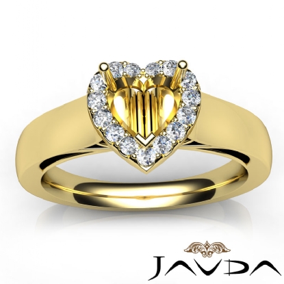 Heart Diamond Engagement Halo Pave Setting Semi Mount Ring 14k Gold (0.2Ct. tw.)