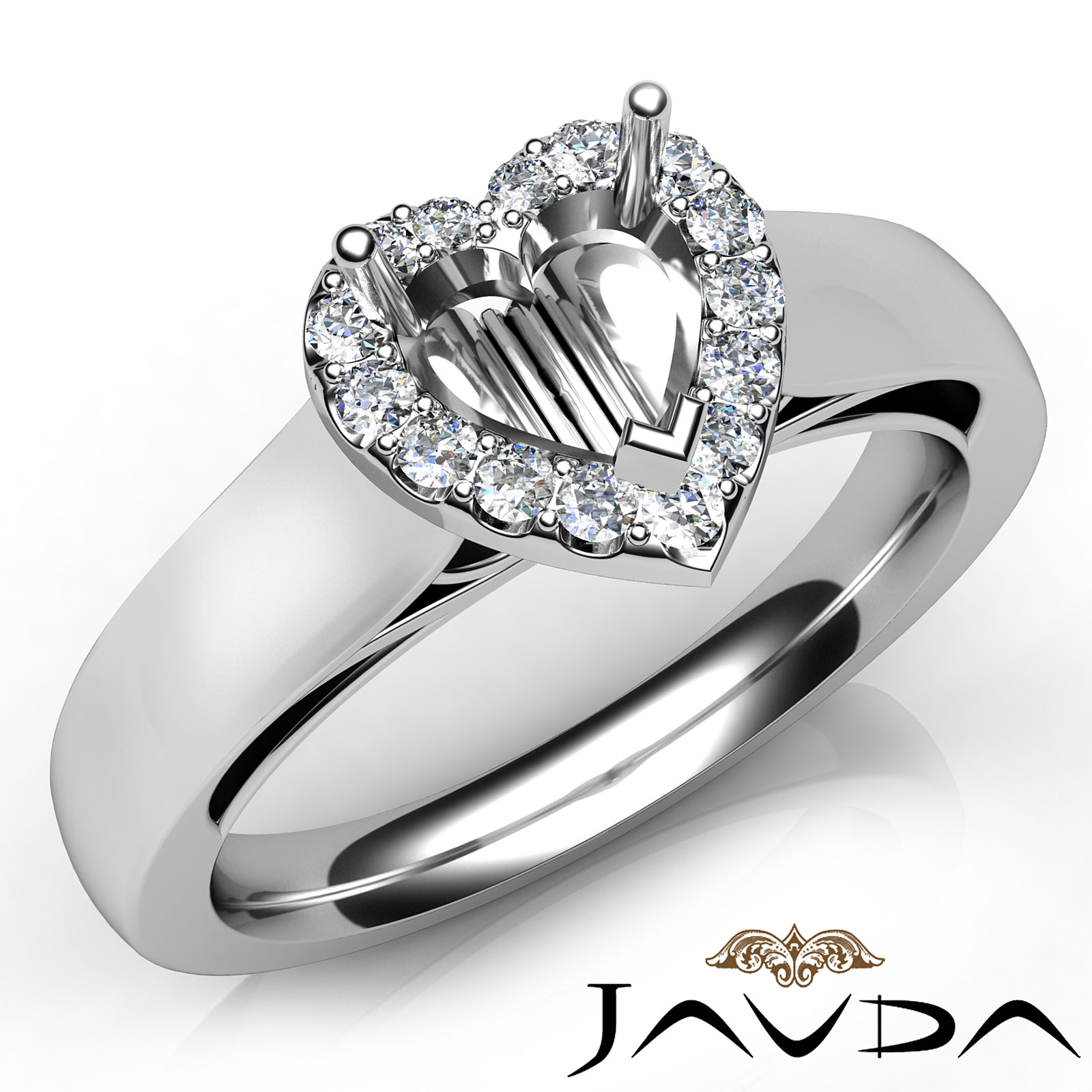 Heart Diamond Engagement Halo Pave Setting Semi Mount Ring 18k W Gold (0.2Ct. tw.)