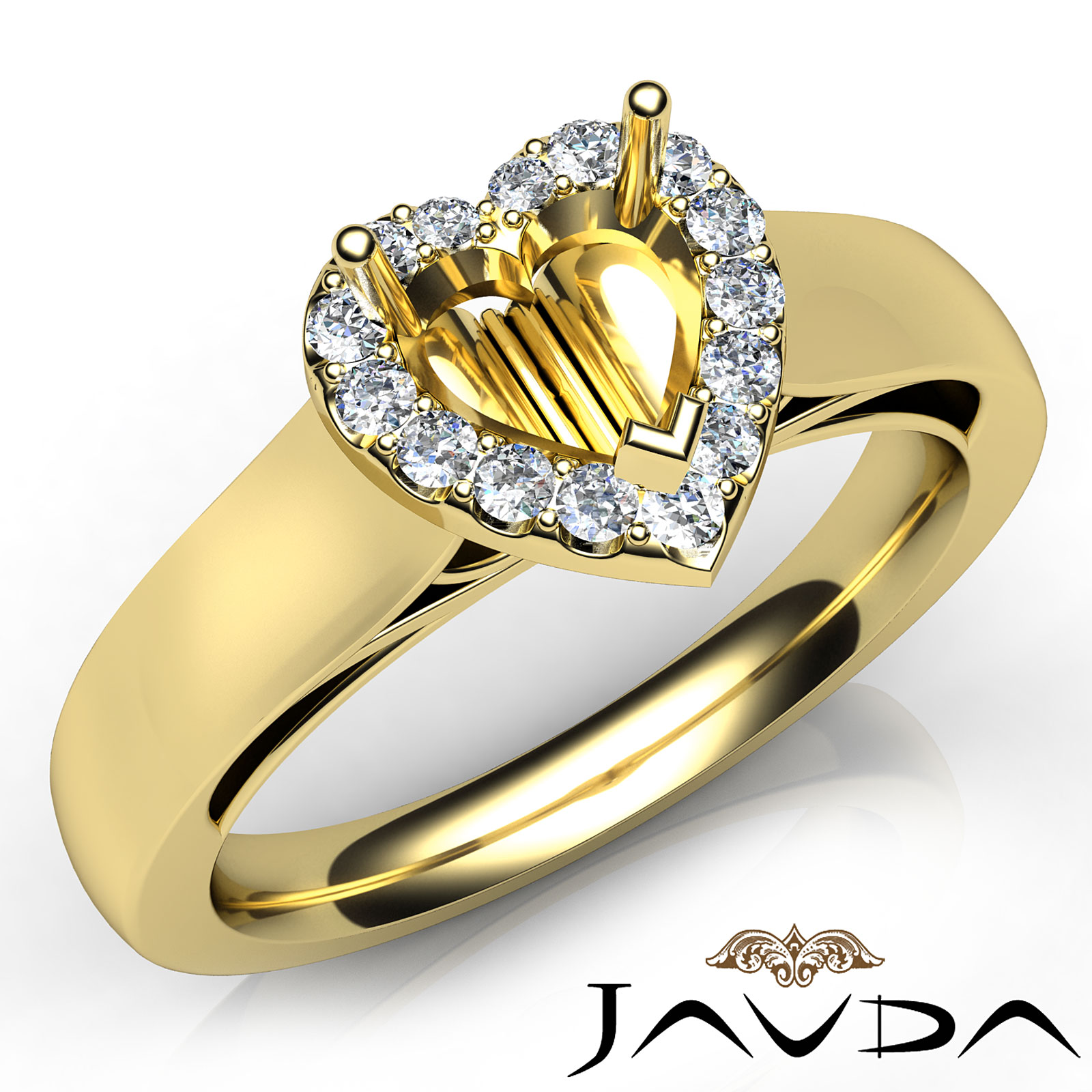 Heart Diamond Engagement Halo Pave Setting Semi Mount Ring 18k Gold (0.2Ct. tw.)