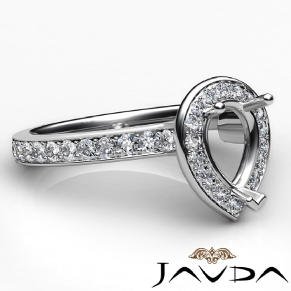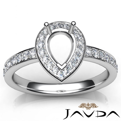 Diamond Engagement Halo Pave Setting Pear Semi Mount Ring Platinum (0.45Ct. tw.)