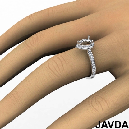 Side 0.45 ctw. Round Diamond Round Diamond Women Engagement & Anniversary Ring made in Platinum 950. Diamonds are set in Halo Pave Setting for Pear Cut in a Semi Mount. (0.45Ct. tw.)