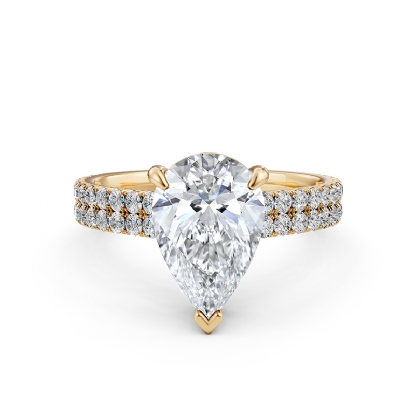 Side 0.50 ctw. Round Diamond Round Diamond Women Engagement & Anniversary Solid Ring made in 18k Gold Yellow. Diamonds are set in U Shape Prong Setting for Pear Cut in a Semi Mount. (0.5Ct. tw.)