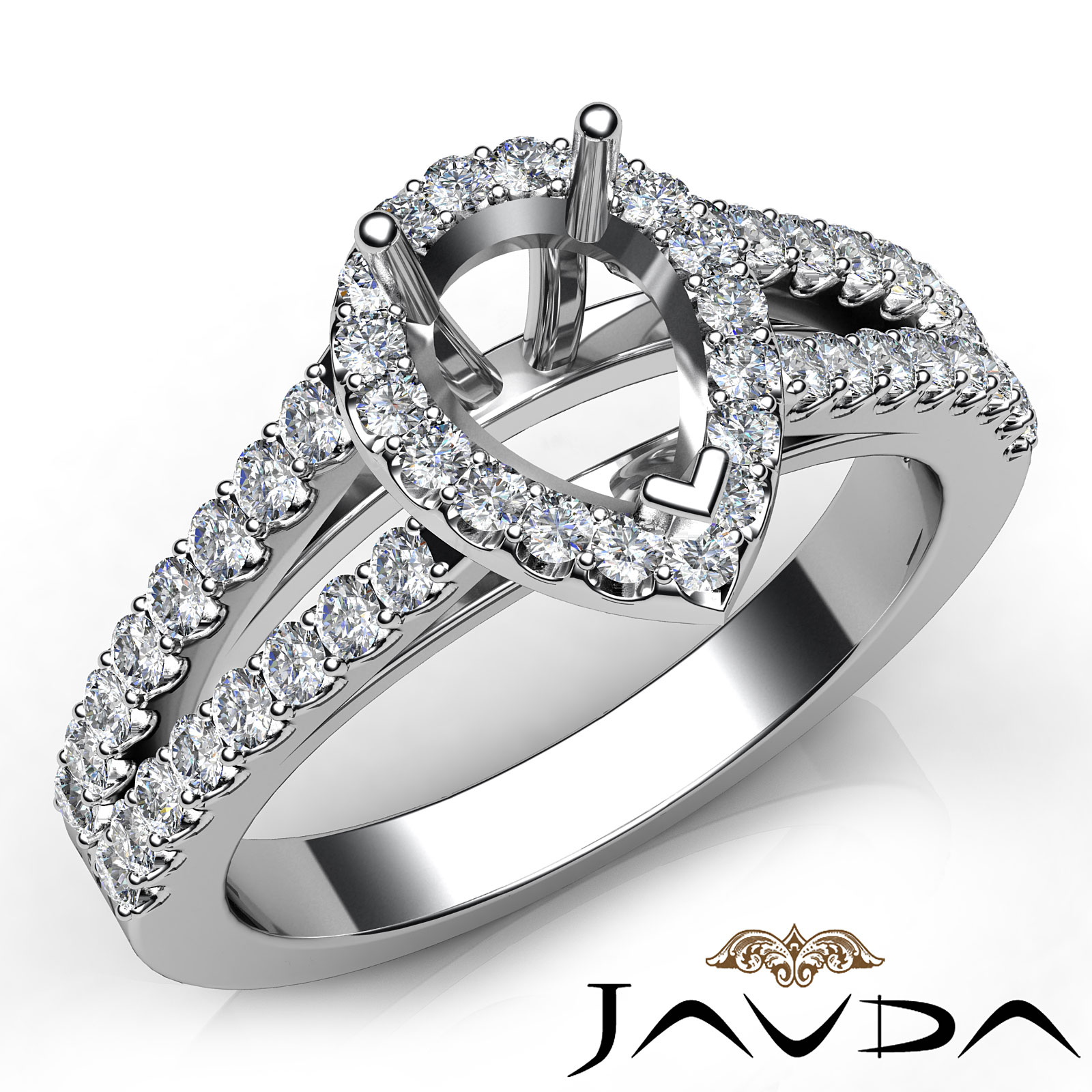 Side 0.75 ctw. Round Diamond Gorgeous Round Diamond Women Engagement & Anniversary Solid Ring made in 18k Gold White. Diamonds are set in Halo Prong Set for Pear Cut in a Semi Mount. (0.75Ct. tw.)