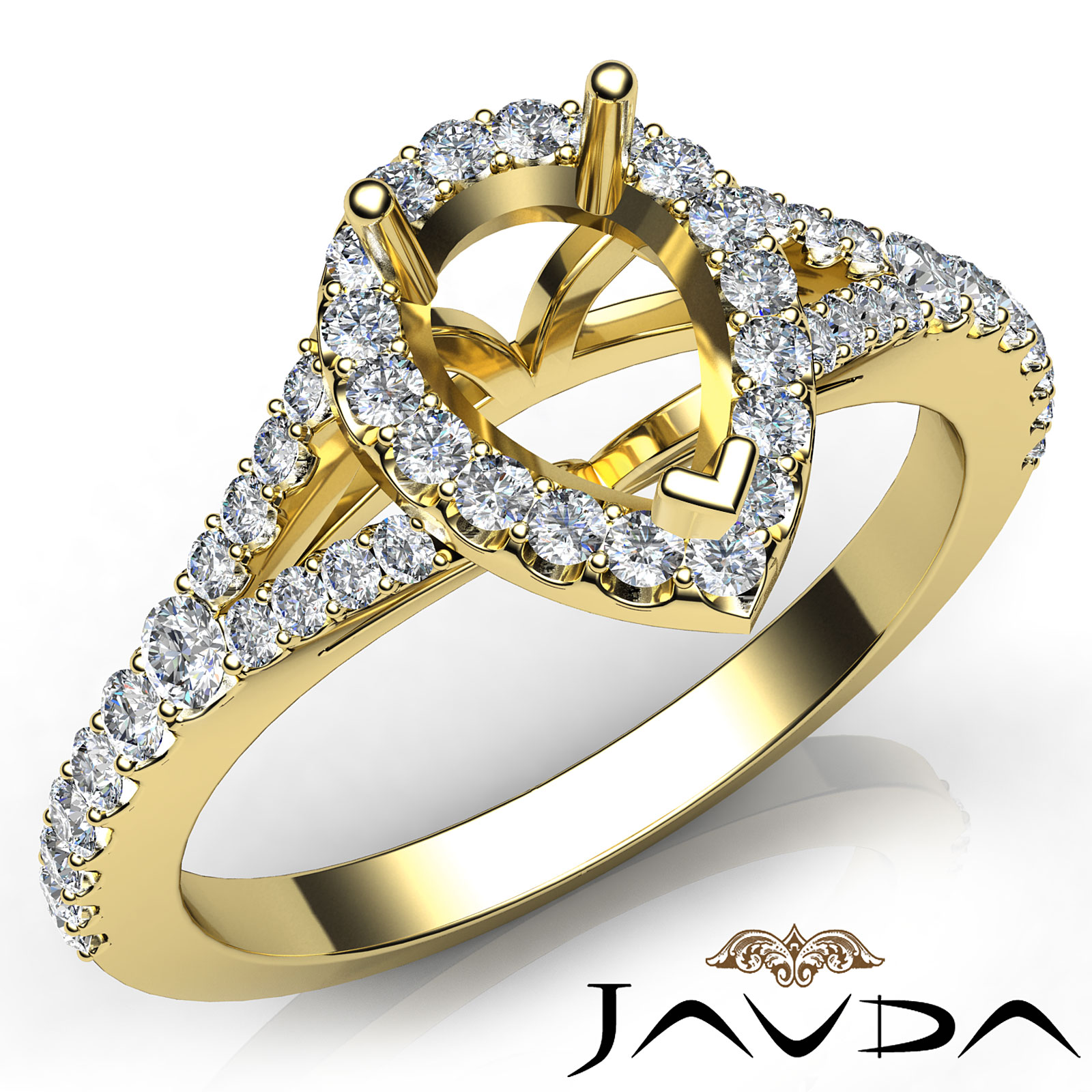 Diamond Engagement 14k Gold Halo Pave Setting Pear Semi Mount Ring (0.5Ct. tw.)