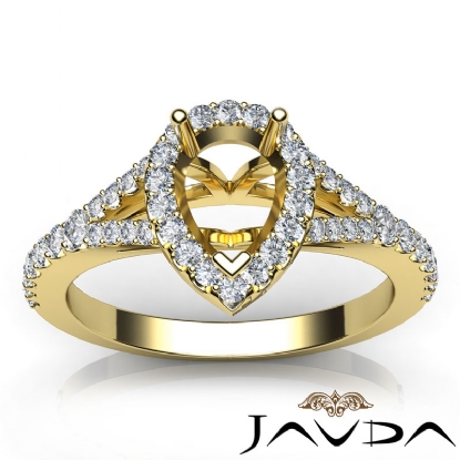 Diamond Engagement 18k Gold Halo Pave Setting Pear Semi Mount Ring (0.5Ct. tw.)