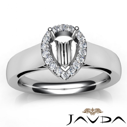 Pear Diamond Engagement Halo Pave Setting Semi Mount Ring Platinum (0.2Ct. tw.)