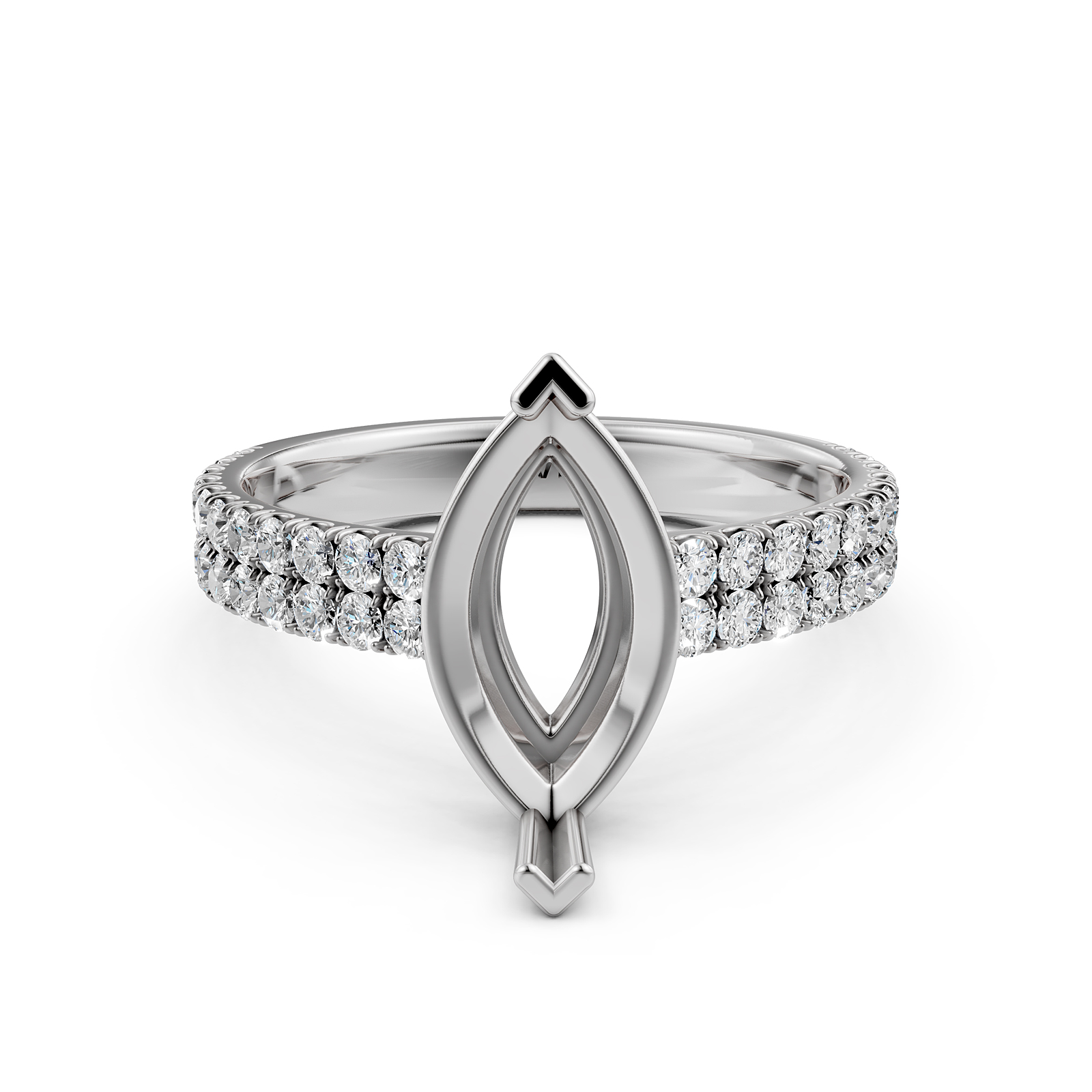 Side 0.50 ctw. Round Diamond Round Diamond Women Engagement & Anniversary Solid Ring made in Platinum 950. Diamonds are set in U Shape Prong Setting for Marquise Cut in a Semi Mount. (0.5Ct. tw.)
