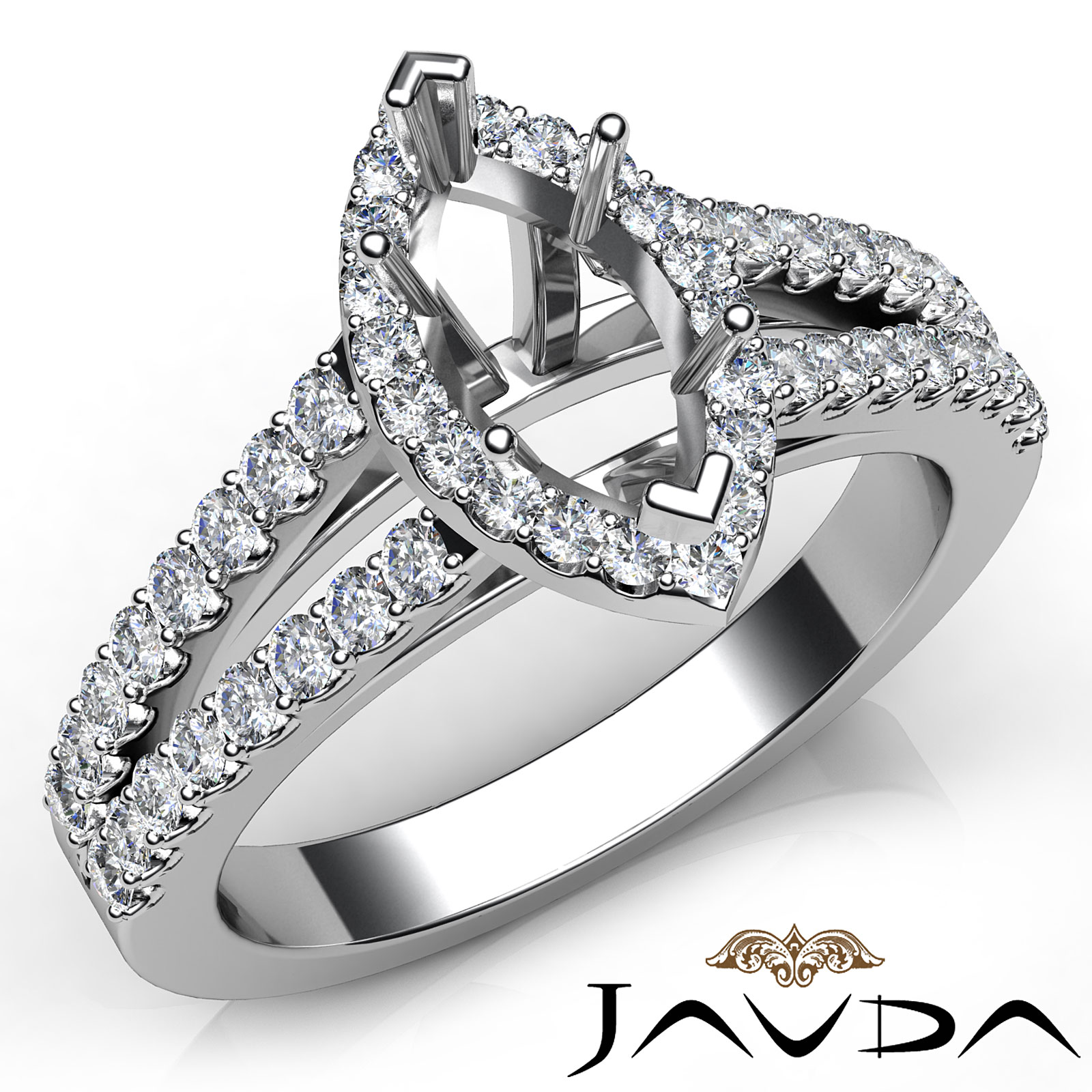Side 0.75 ctw. Round Diamond Gorgeous Round Diamond Women Engagement & Anniversary Solid Ring made in Platinum 950. Diamonds are set in Halo Prong Set for Marquise Cut in a Semi Mount. (0.75Ct. tw.)