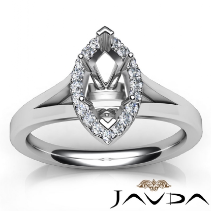 Diamond Engagement Marquise Semi Mount 18k W Gold Halo Pave Setting Ring (0.2Ct. tw.)