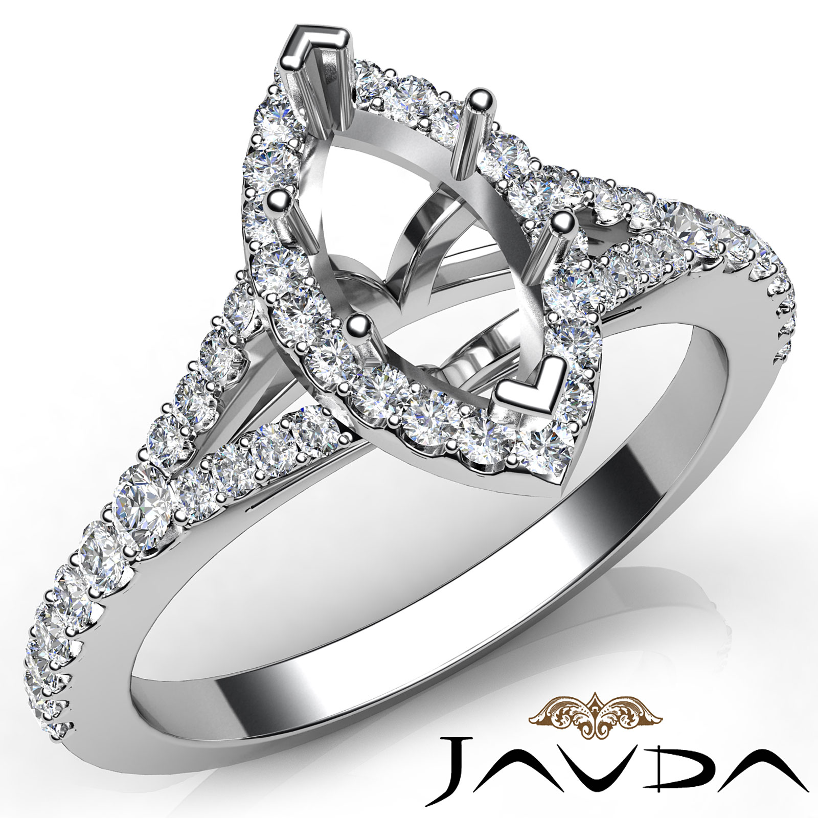 Diamond Engagement Platinum Halo Pave Setting Marquise Semi Mount Ring (0.5Ct. tw.)