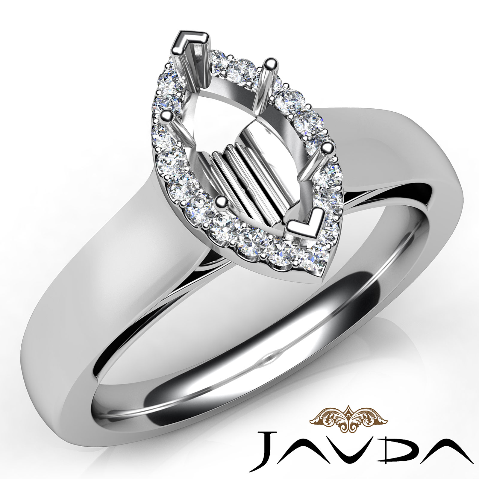 Marquise Diamond Engagement Halo Pave Setting Semi Mount Ring Platinum (0.2Ct. tw.)