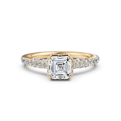 Side 0.65 ctw. Round Diamond Round Diamond Women Engagement & Anniversary Solid Ring made in 18k Gold Yellow. Diamonds are set in Pave Setting for Asscher Cut in a Semi Mount. (0.65Ct. tw.)