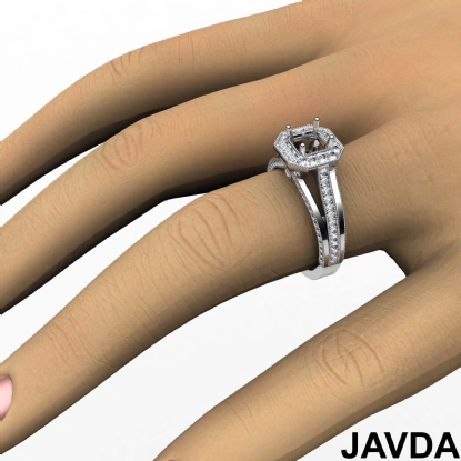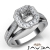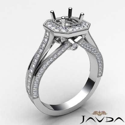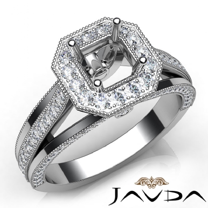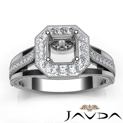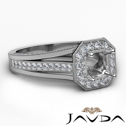 Halo Pave Diamond Engagement Asscher Semi Mount Millgrain Ring 18k W Gold (0.9Ct. tw.)