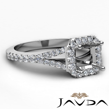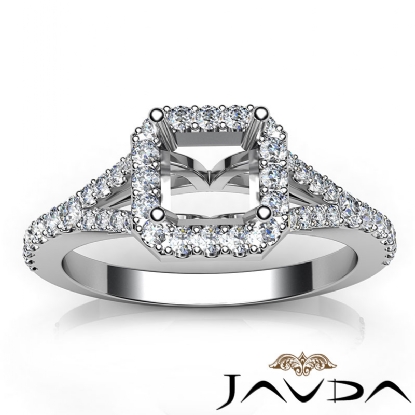 Diamond Engagement Platinum Halo Pave Setting Asscher Semi Mount Ring (0.5Ct. tw.)