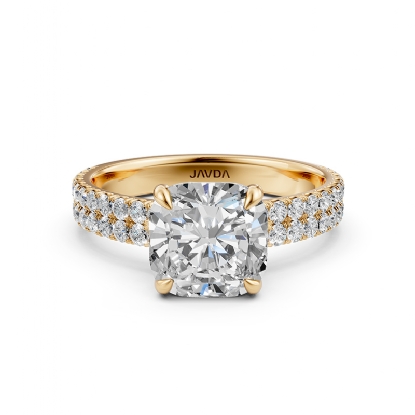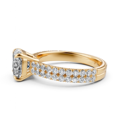 Side 0.50 ctw. Round Diamond Round Diamond Women Engagement & Anniversary Solid Ring made in 14k Gold Yellow. Diamonds are set in U Shape Prong Setting for Cushion Cut in a Semi Mount. (0.5Ct. tw.)