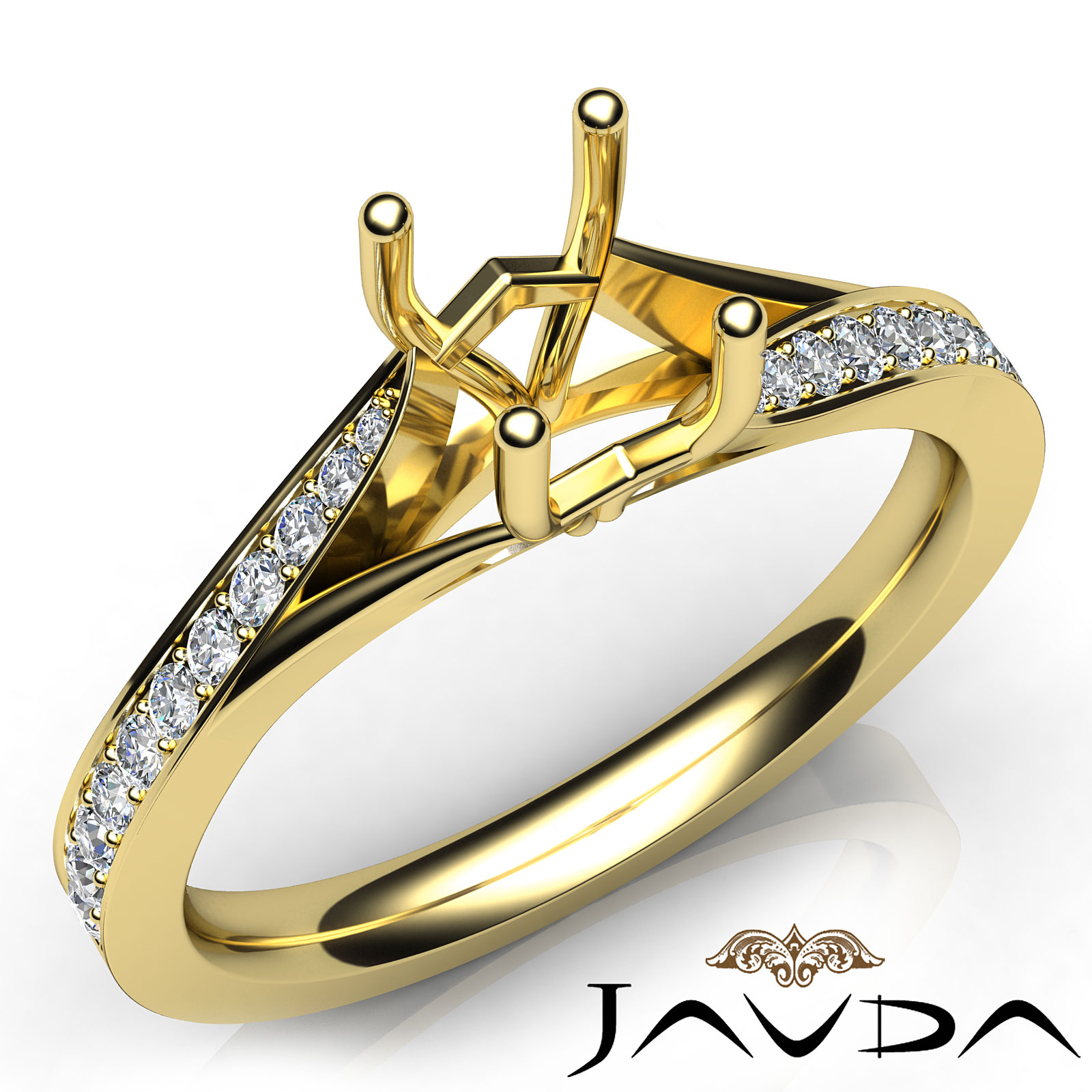 Side 0.35 ctw. Round Diamond Round Diamond Women Engagement & Anniversary Solid Ring made in 18k Gold Yellow. Diamonds are set in Pave Setting for Cushion Cut in a Semi Mount. (0.35Ct. tw.)