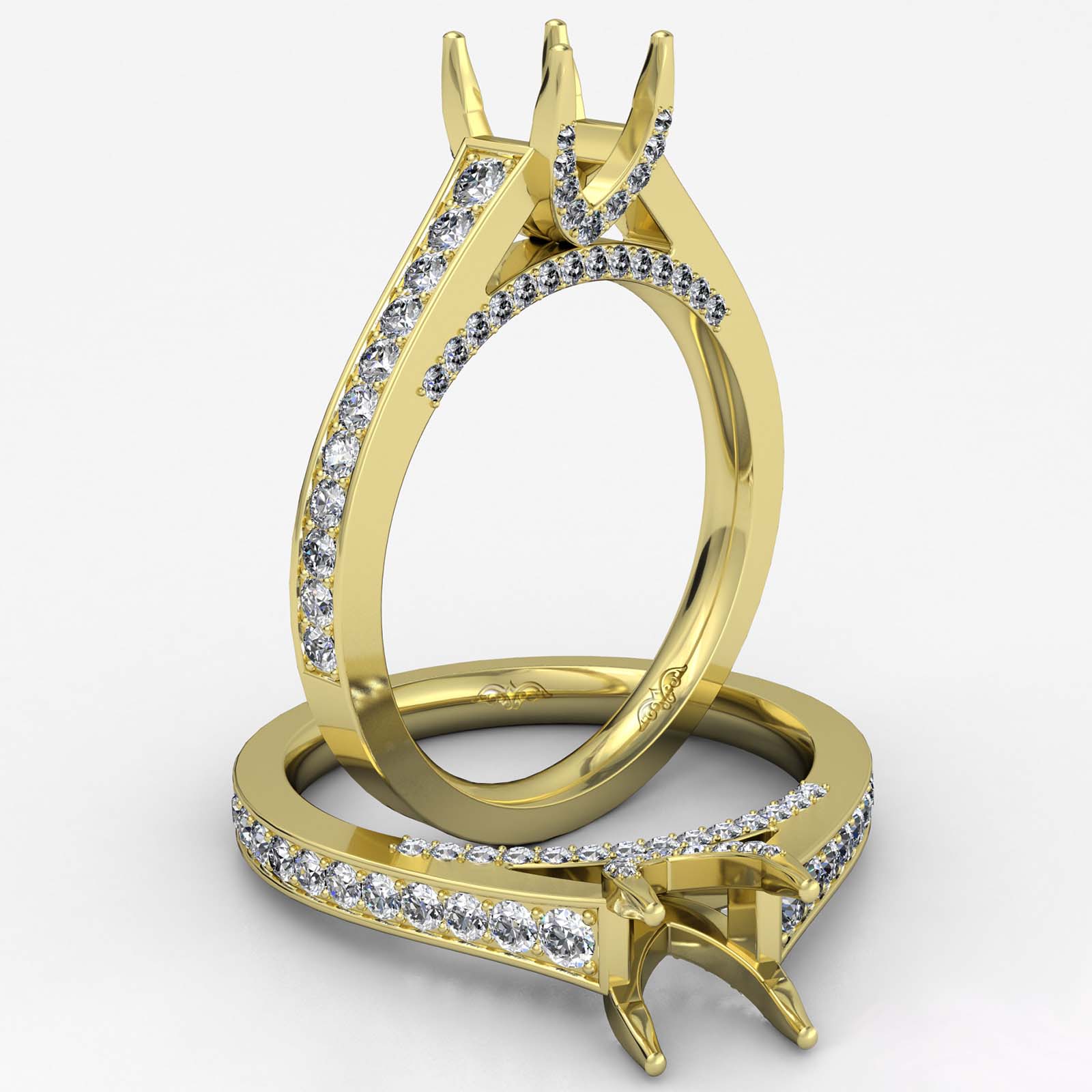 Side 0.75 ctw. Round Diamond Round Diamond Women Engagement & Anniversary Solid Ring made in 14k Gold Yellow. Diamonds are set in Pave Setting for Cushion Cut in a Semi Mount. (0.75Ct. tw.)