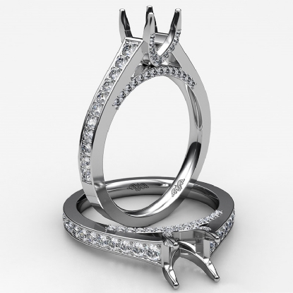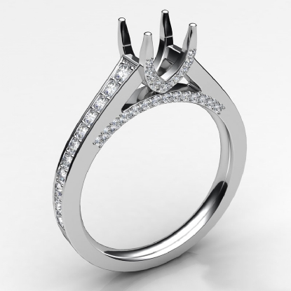 Diamond Engagement Cushion Semi Mount Pave Setting Ring Platinum (0.75Ct. tw.)