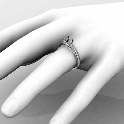 Side 0.75 ctw. Round Diamond Round Diamond Women Engagement & Anniversary Solid Ring made in Platinum 950. Diamonds are set in Pave Setting for Cushion Cut in a Semi Mount. (0.75Ct. tw.)