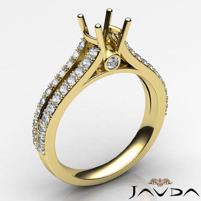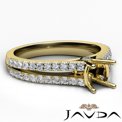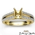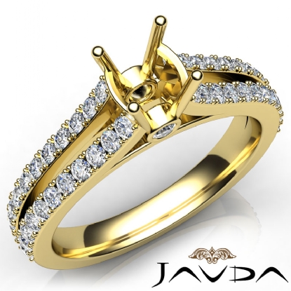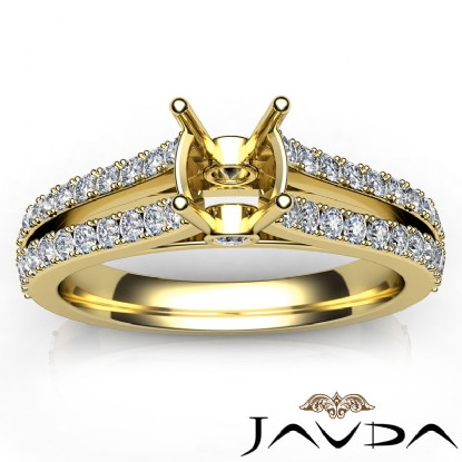 Beautiful cushion cut diamond engagement split shank semi mount ring made in 14k Gold Yellow. Features round diamonds on split shank. Diamonds are set in shared prong setting, also available in metal option 14k and 18k white gold, yellow gold, rose gold and platinum 950. (0.65Ct. tw.)