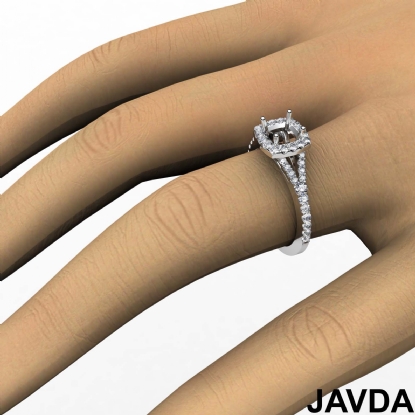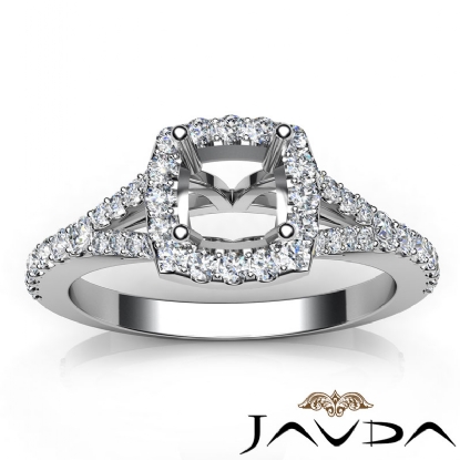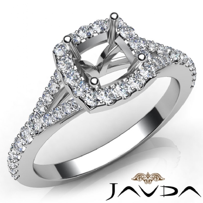 Diamond Engagement 18k W Gold Halo Pave Setting Cushion Semi Mount Ring (0.5Ct. tw.)