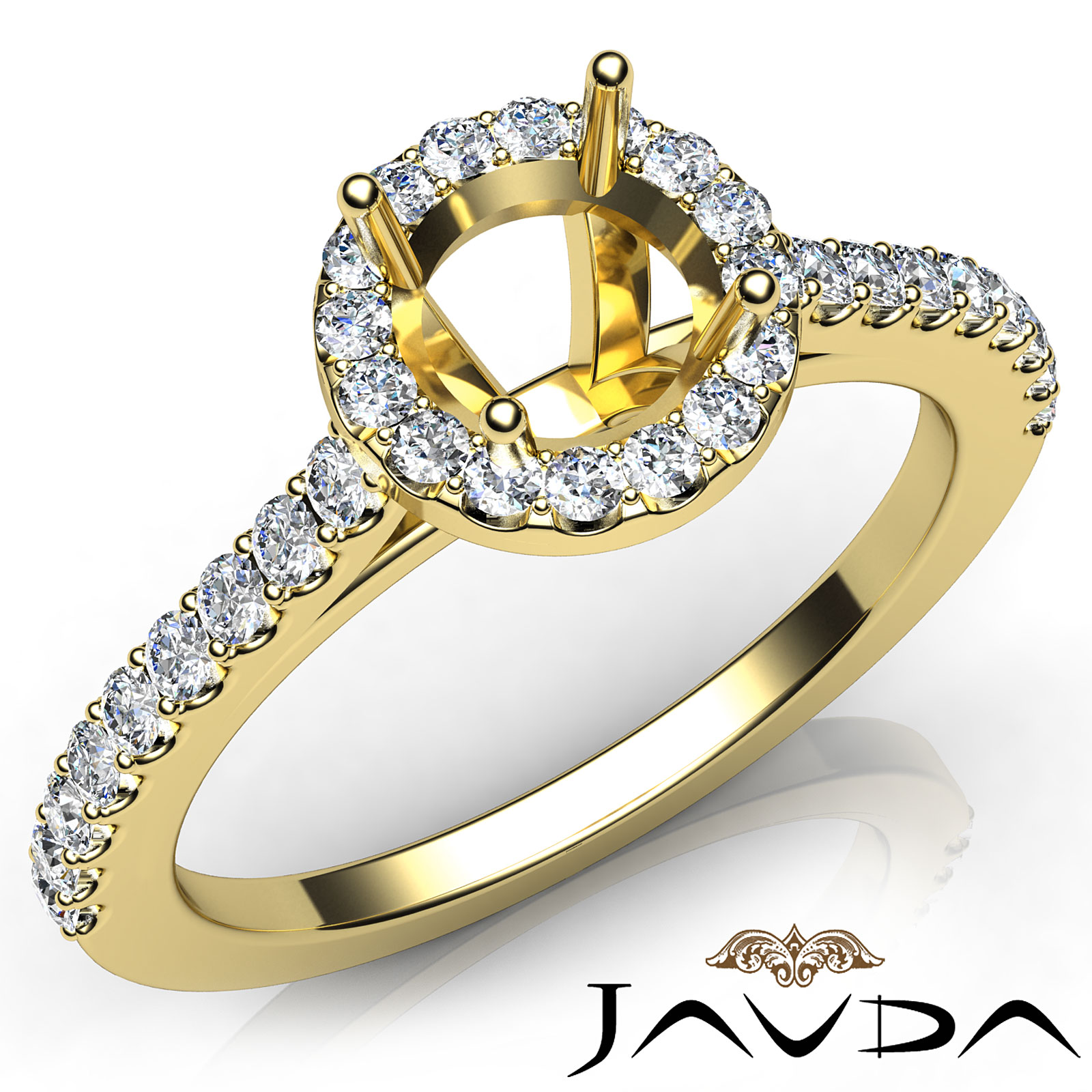 Side 0.50 ctw. Round Diamond Round Diamond Women Engagement & Anniversary Solid Ring made in 18k Gold Yellow. Diamonds are set in Shared Prong Setting for Round Cut in a Semi Mount. (0.5Ct. tw.)