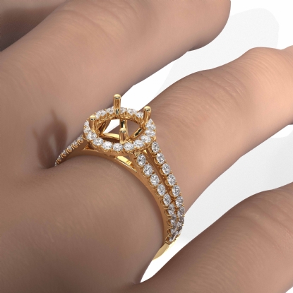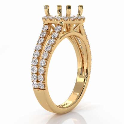Side 0.75 ctw. Round Diamond Gorgeous Round Diamond Women Engagement & Anniversary Solid Ring made in 14k Gold Yellow. Diamonds are set in Halo Prong Set for Round Cut in a Semi Mount. (0.75Ct. tw.)