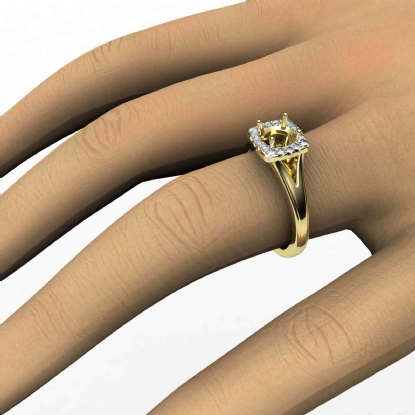 Side 0.20 ctw. Round Diamond Round Diamond Women Engagement & Anniversary Ring made in 14k Gold Yellow. Diamonds are set in Halo Pave Setting for Round Cut in a Semi Mount. (0.2Ct. tw.)