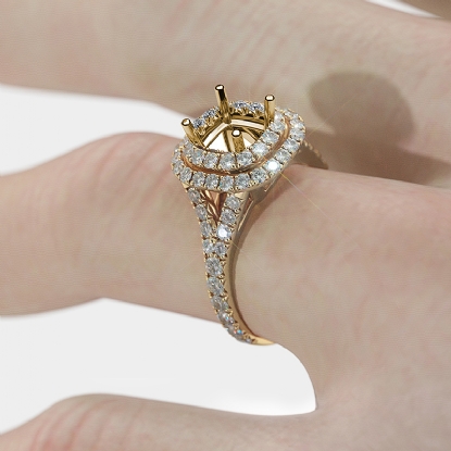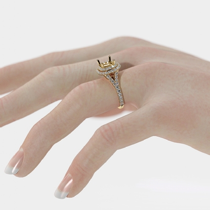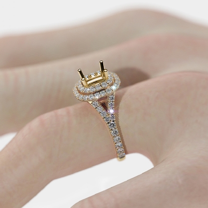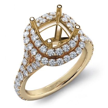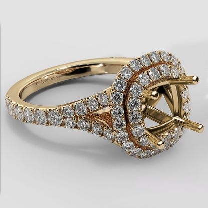 French Cut Halo Diamond Engagement Ring Cushion Semi Mount 14k Gold (1.4Ct. tw.)