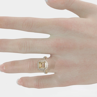 Undeniably striking, this 14K white gold engagement ring is a collection of Cushion semi mounts, each in round french cut pave set sparkling halos and shanks that reflect pure sophistication. Celebrate lavishly with this . 14k Gold Yellow diamond ring. (1.4Ct. tw.)