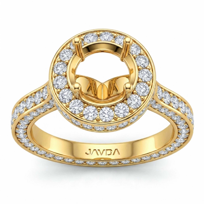 Round Diamond Engagement Ring Pave Semi Mount 18k Gold Wedding Band (1.9Ct. tw.)