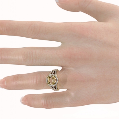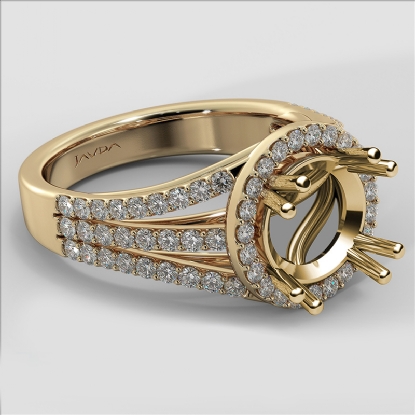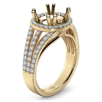 Forever timeless, this luxurious 14k Gold Yellow engagement ring has a round semi mount. It showcases . Halo U Cut shared Prong set round diamonds in halo & along the shank and its 5.7 gram. (1Ct. tw.)