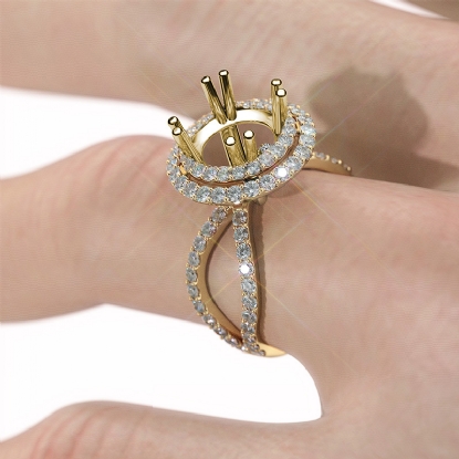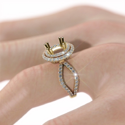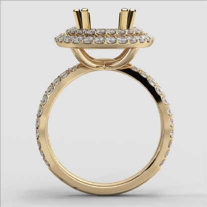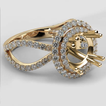 2 Row Halo Diamond Engagement Ring 14k Gold Round Semi Mount Band (0.9Ct. tw.)